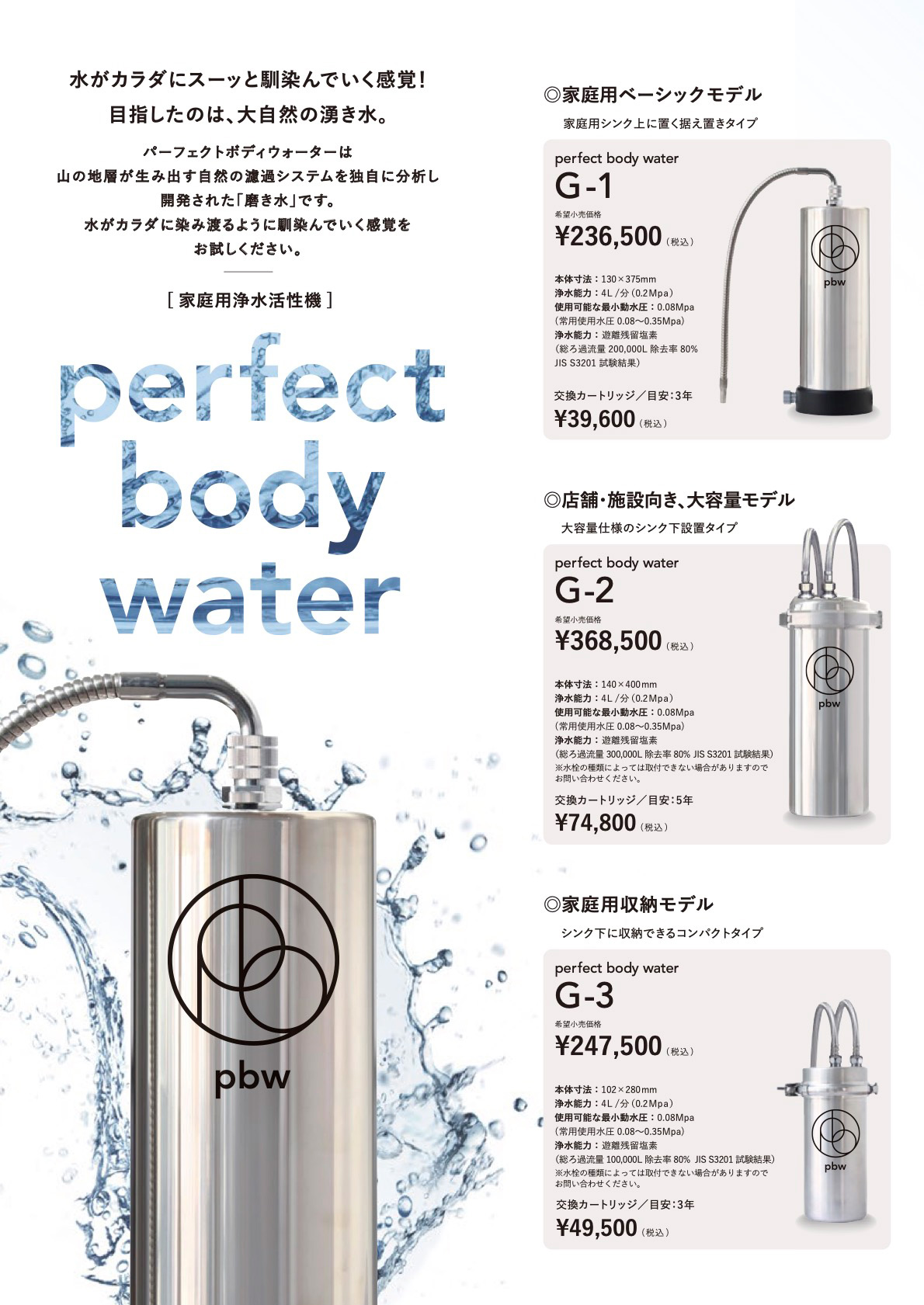 弊社は、パーフェクトボディウォーター® 特約店として、perfect body water浄水器の販売ならびに取り扱い代理店を募集しております。