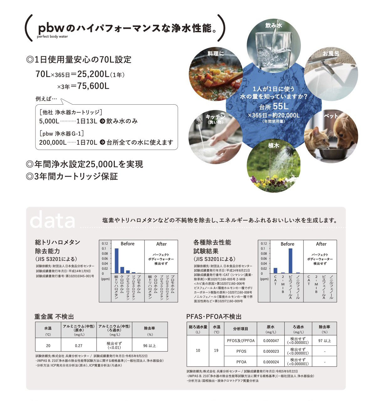 健康そのもの以上に、公私ともに自分自身の本来のパフォーマンスを発揮し、より豊かに生きることが本当の目的なのではないでしょうか。身体の60〜70%を占める「水」を変えることで、健康への意識が変わり、人生もよりよい方向へ変わっていきます。